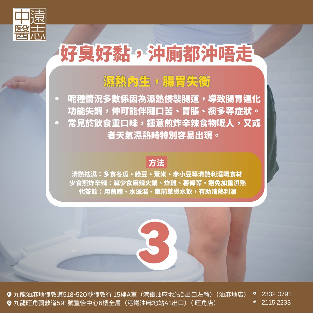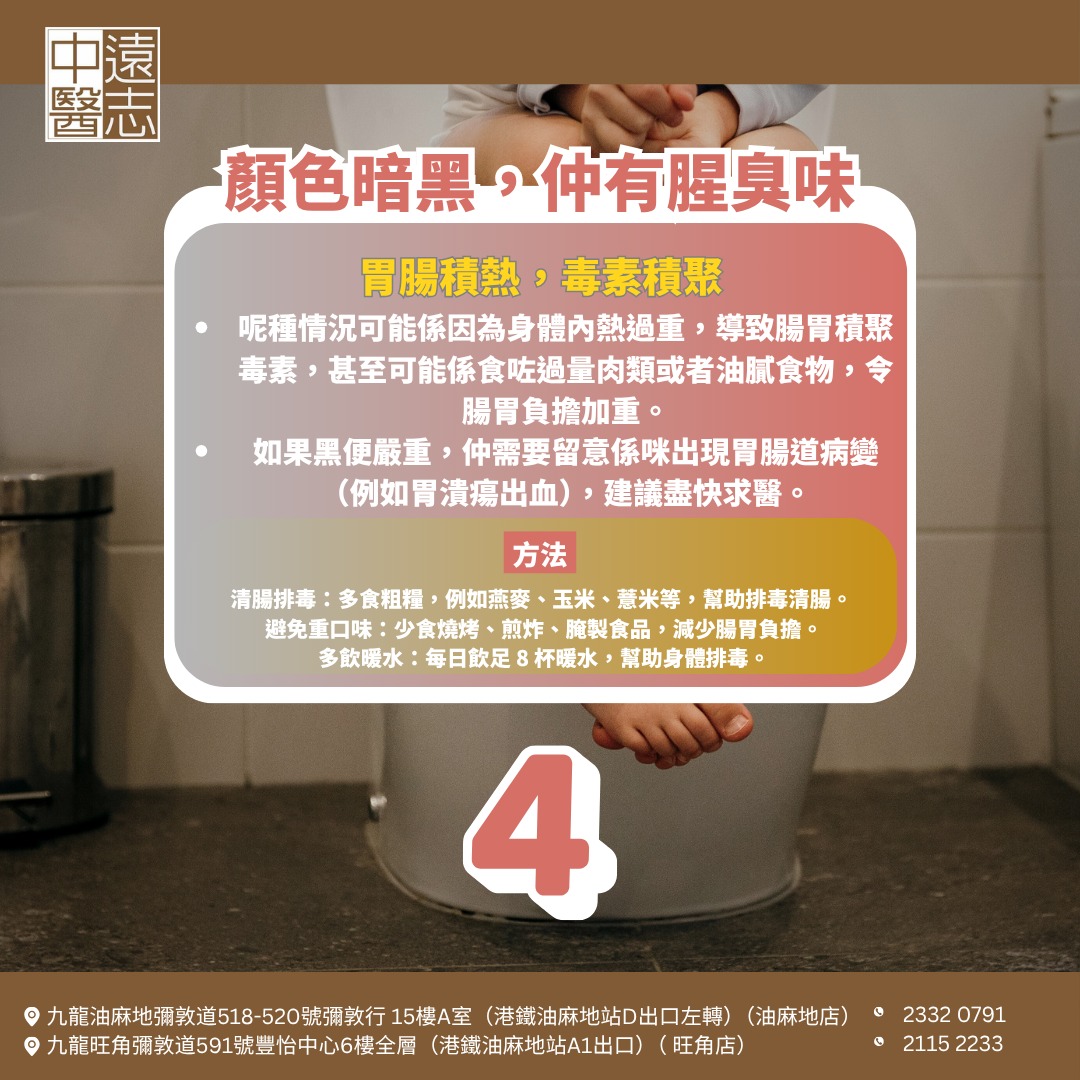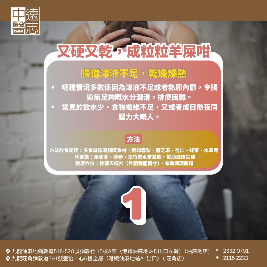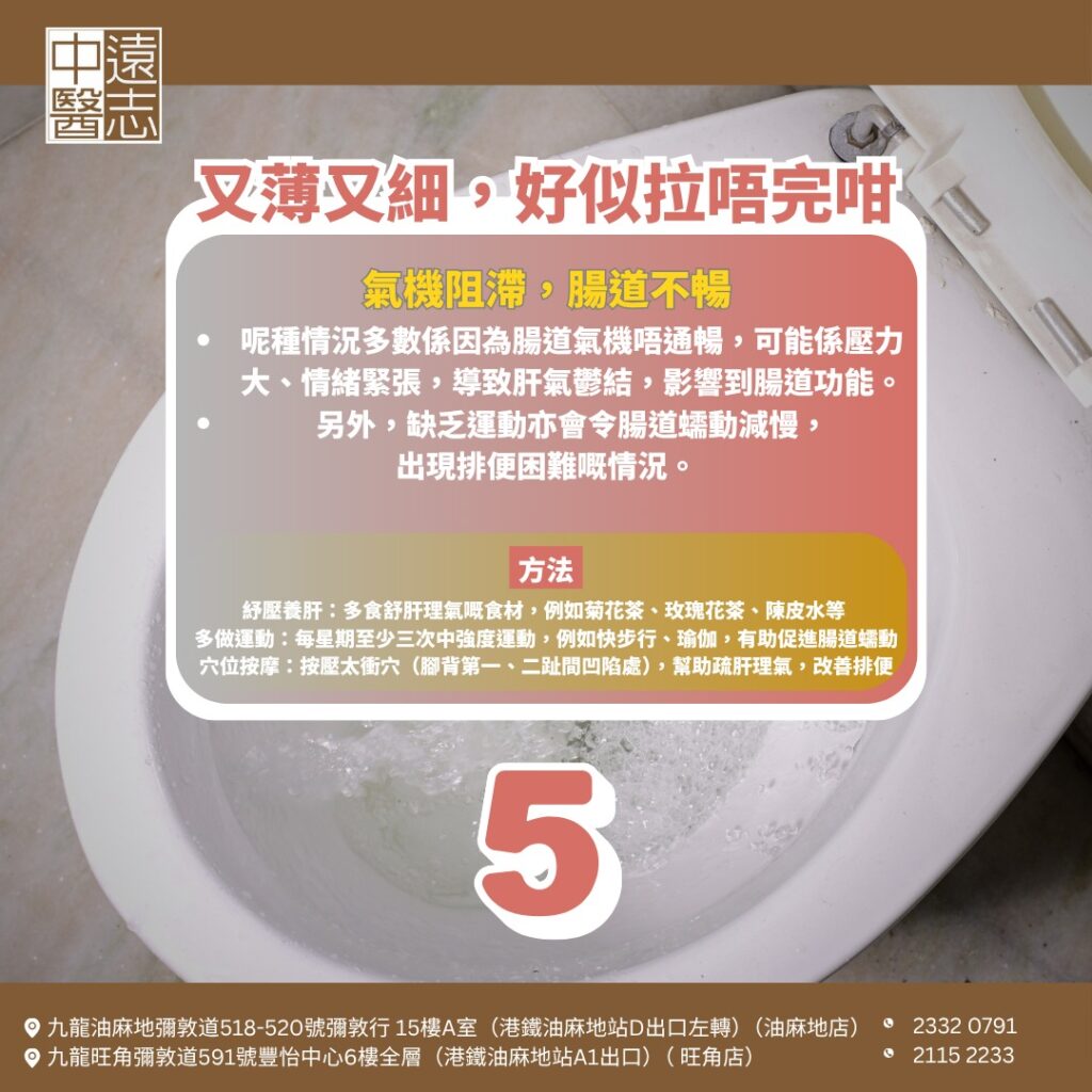 中醫講「通則不痛,痛則不通」,排便順暢係身體健康嘅重要標誌。如果你發現大便狀態唔對勁,記得留意飲食同生活習慣,必要時搵中醫調理,從根源改善腸胃健康!