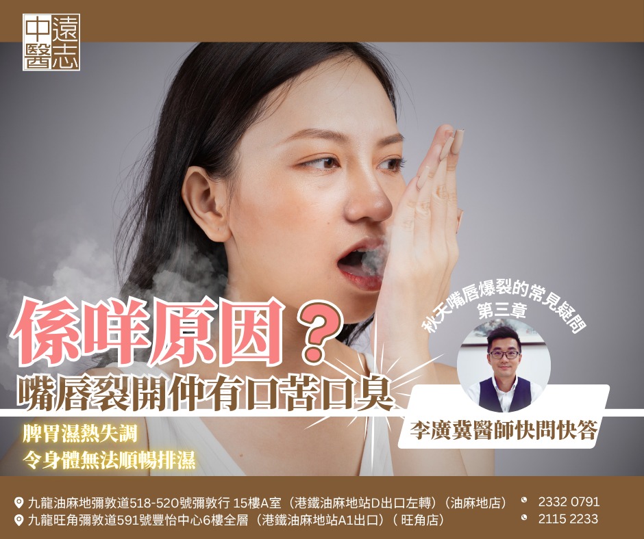問:嘴唇裂開仲有口苦口臭,係咩原因?