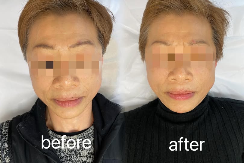 好彩佢做左4次小顏之後,皮膚變返飽滿有彈性,皺紋亦減淡了不少