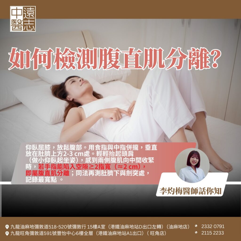 🌟 李灼梅醫師提醒大家:腹直肌分離並唔係永久性問題,只要及早發現,配合專業治療同日常練習,腹肌係可以恢復嘅!遠志中醫致力以專業手法同深入淺出嘅知識,幫助大家用中醫調理身體,重拾健康!