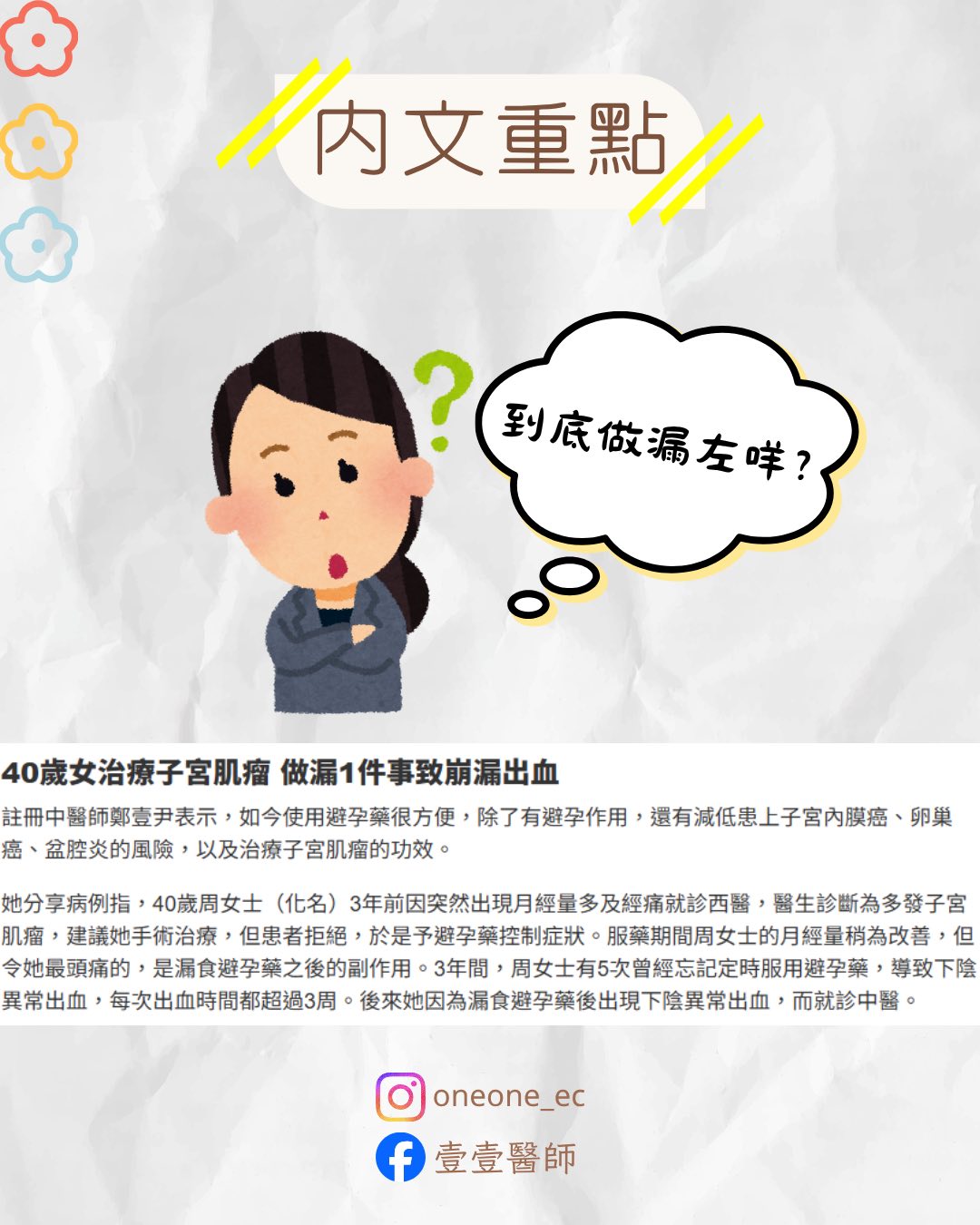 #婦科 #月經 #經痛 #月經失調 #婦科健康 #女性健康 #中醫 #壹壹醫師 #one #ec #tcm #menstrual #menstrualdisc #menstrualcycleawareness #menstrualhealth #dysmenorrhea #period #白帶 #leucorrhoea #accupuncture #針灸 #避孕藥