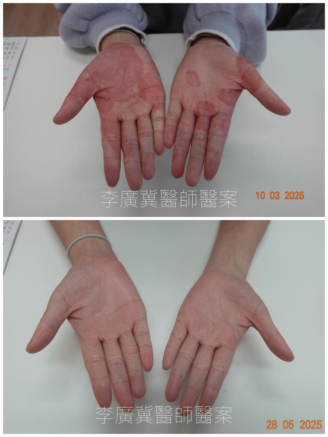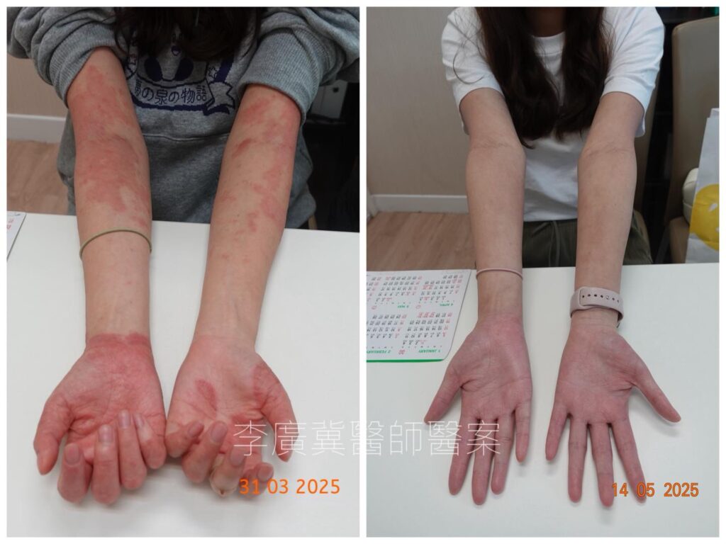 此個案中,女披唇經過約三個月治療,皮膚變得光滑,紅腫消退,痕癢減輕,連面部眼皮都退紅,簡直可以拍寶礦力少女廣告,非常陽光開朗的她,笑得更燦爛了,見到她康復的笑容,戴著口罩的柴醫也暗自歡喜,因為這種成功感可以抵消未成功個案的挫敗感。